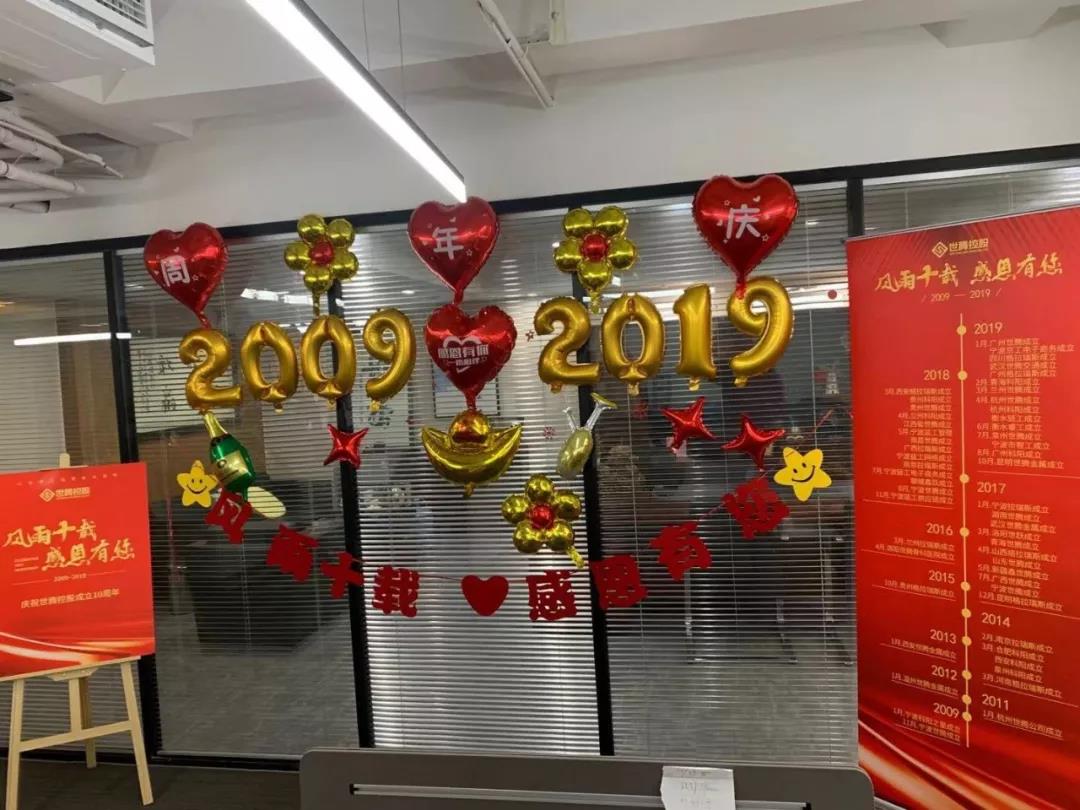 正直世騰成立十周年之際,總部及各子公司紛紛喜迎世騰十周歲生日,世騰總部及各子公司布置一新、喜氣洋洋。